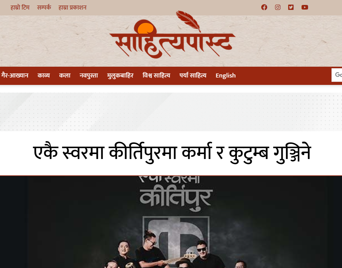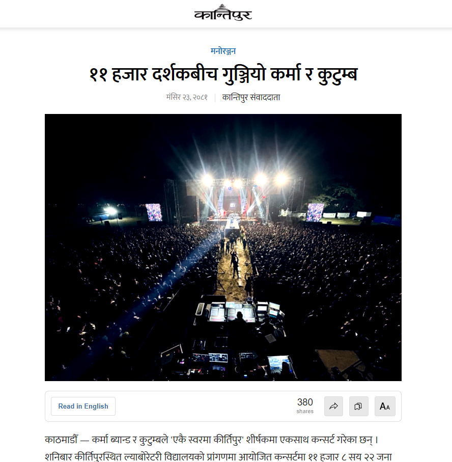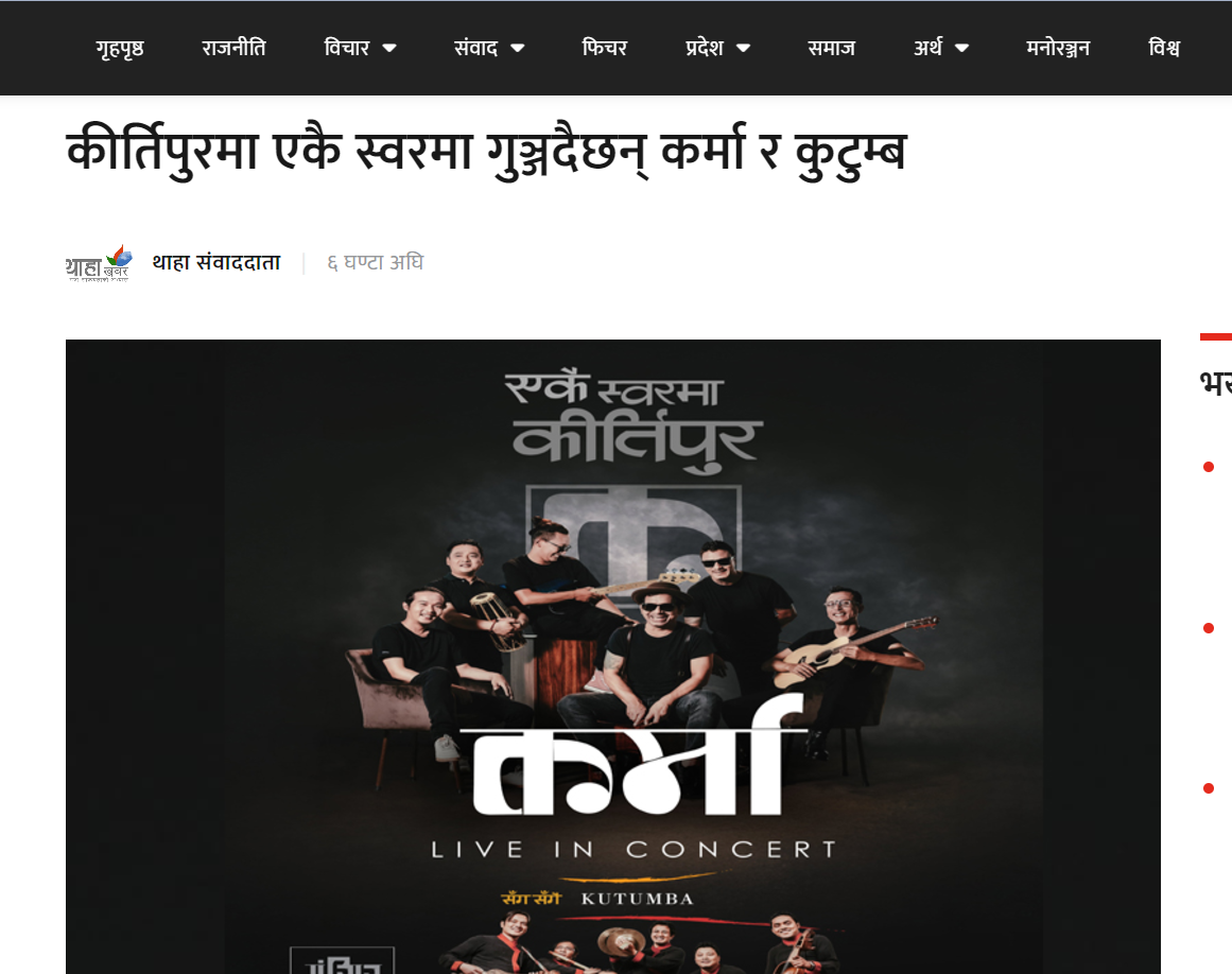 Read the news एकै स्वरमा गुञ्जिए कर्मा ब्यान्ड र कुटुम्ब (तस्बिरहरू) Click here to read full news फर्कियो कर्मा : कीर्तिपुरबाट यात्राको भव्य सुरुआत, दर्शकको अपूर्व साथ Click here to read full news ११ हजार दर्शकबीच गुञ्जियो कर्मा र कुटुम्ब Click here to read full news ‘कर्मा र कुटुम्ब’ कीर्तिपुरमा गुञ्जिने Click here to read full news एकै स्वरमा कीर्तिपुरमा कर्मा र कुटुम्ब गुञ्जिने Click here to read full news एकै स्वरमा कीर्तिपुरमा कर्मा र कुटुम्ब गुञ्जिने Click here to read full news कीर्तिपुरमा एकै स्वरमा गुञ्जदैछन् कर्मा र कुटुम्ब Click here to read full news एकै स्वरमा कीर्तिपुरमा कर्मा र कुटुम्ब गुञ्जिने Click here to read full news एकै स्वरमा कीर्तिपुरमा कर्मा र कुटुम्ब गुञ्जिने Click here to read full news Previous Page1 Page2 Page3 Next
